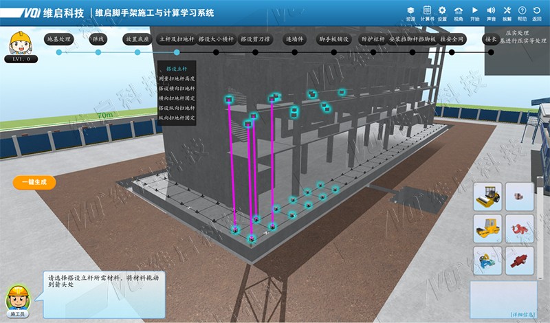 是基于BIM技術(shù)、虛擬仿真等技術(shù)開發(fā)的建筑腳手架實訓系統(tǒng)。